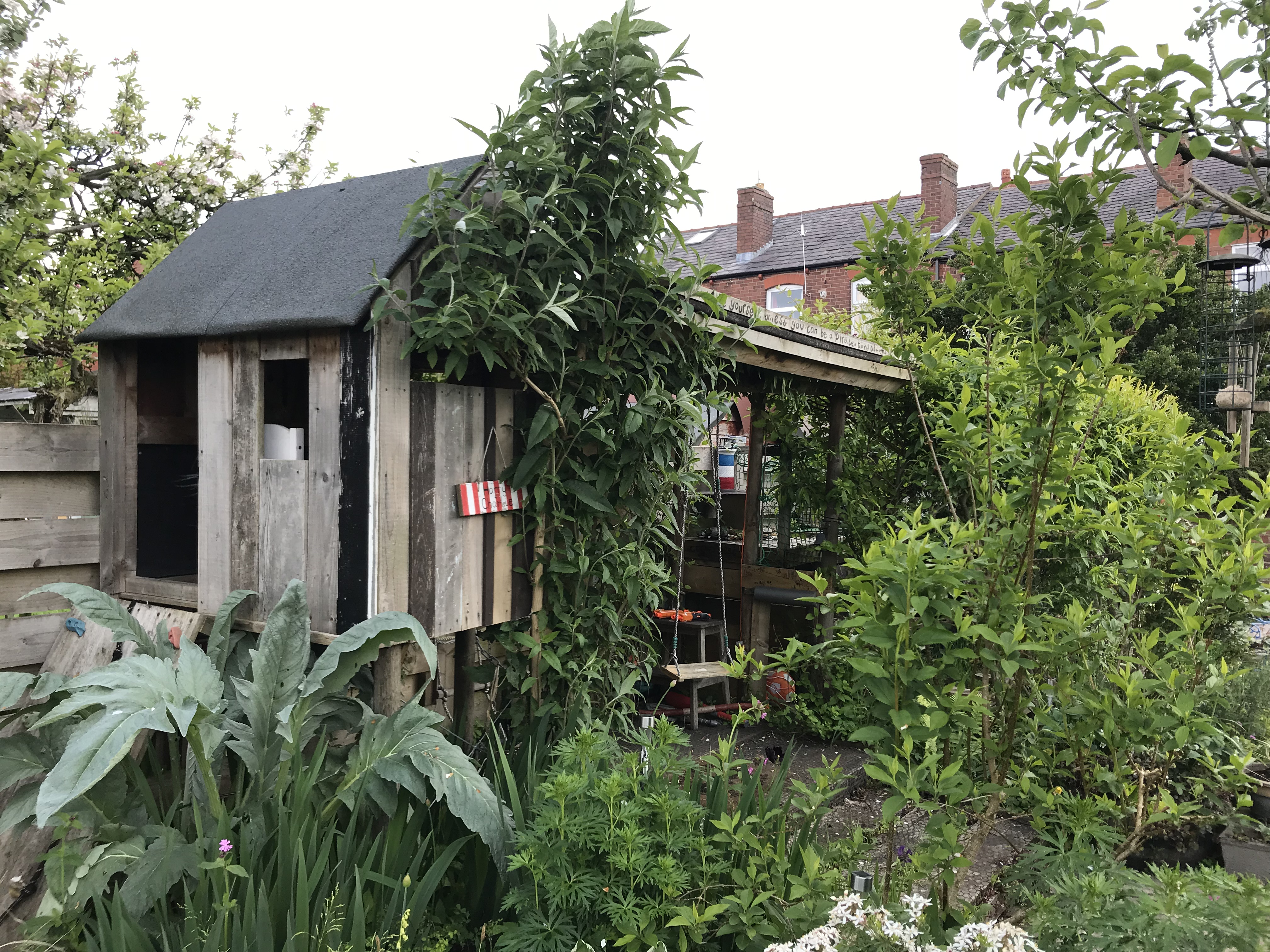 Update: a van load of recycled pallet wood later, from the lovely John in Rawtenstall, and it now looks like this: