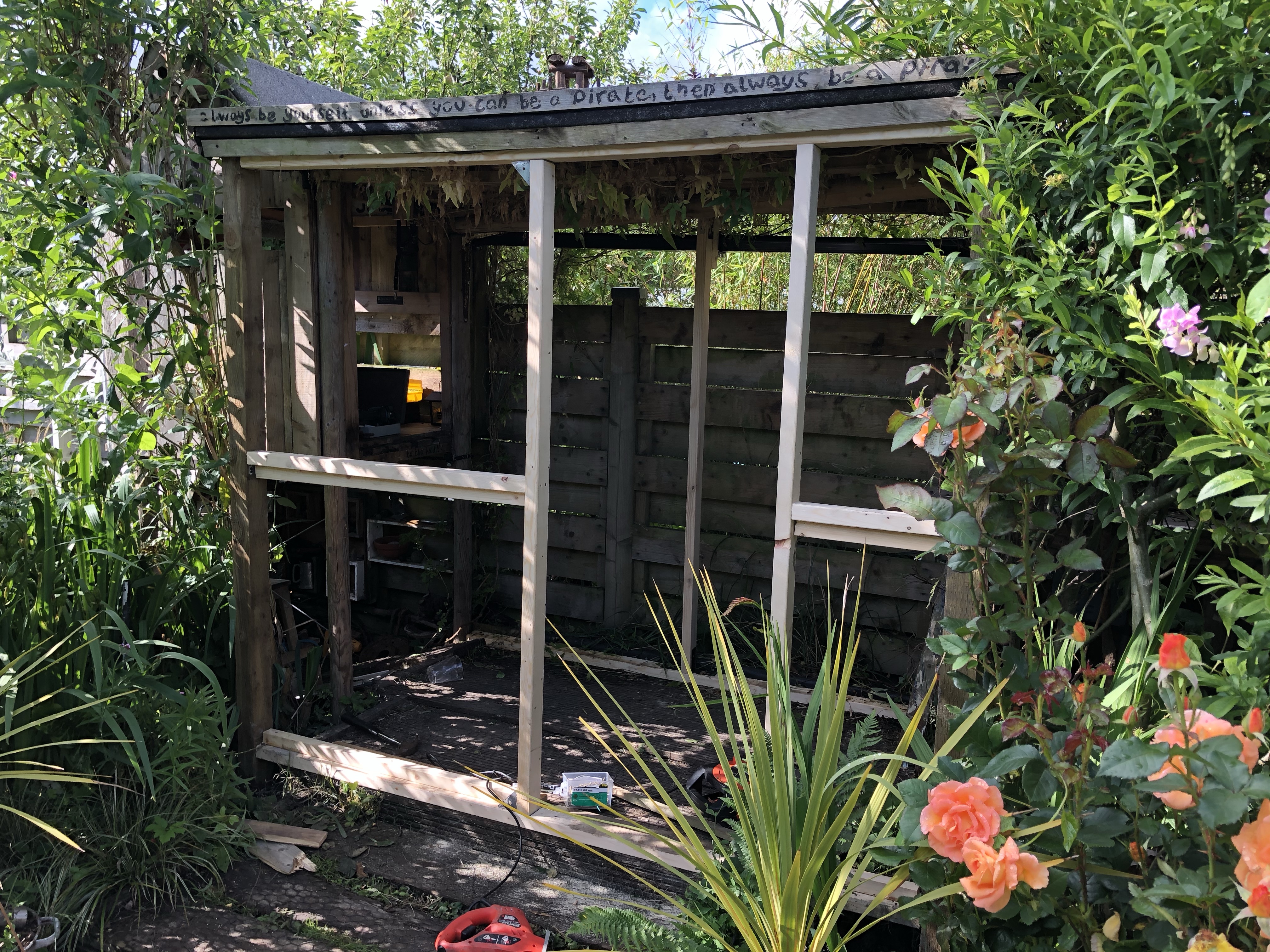 It’s already better – still unfinished, but it’s exciting to be recycling something that had clearly seen better days into something that’s going to be used. It’s a good reminder that a garden is constantly evolving, and that goes for the buildings as well as the landscaping and plants.